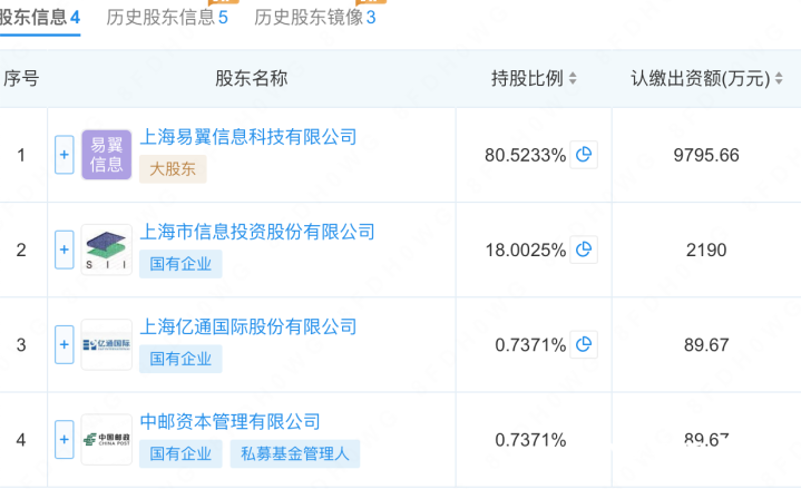 企查查信息显示,上海付费通原有七名股东。其中,本次变更的易翼信息、上海市信息投资分别为其第一大股东和第二大股东,前者股权增加30.508%,后者股权减少了23.866%,剩余转让的6.642%股权分别来自天翼电子商务、银联商务以及上海水务。